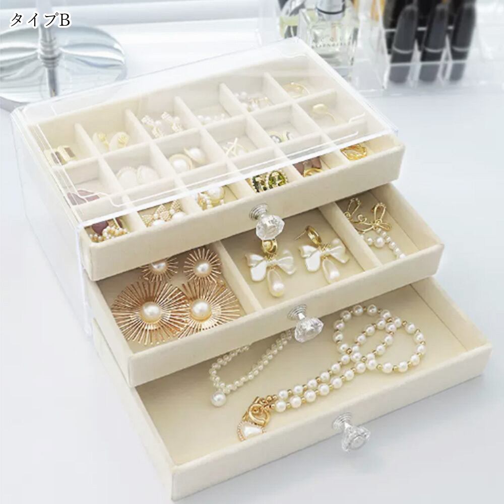 お手持ちのジュエリーやアクセサリーなどの小物を一括管理できる3段引き出しジュエリー収納ボックスです
